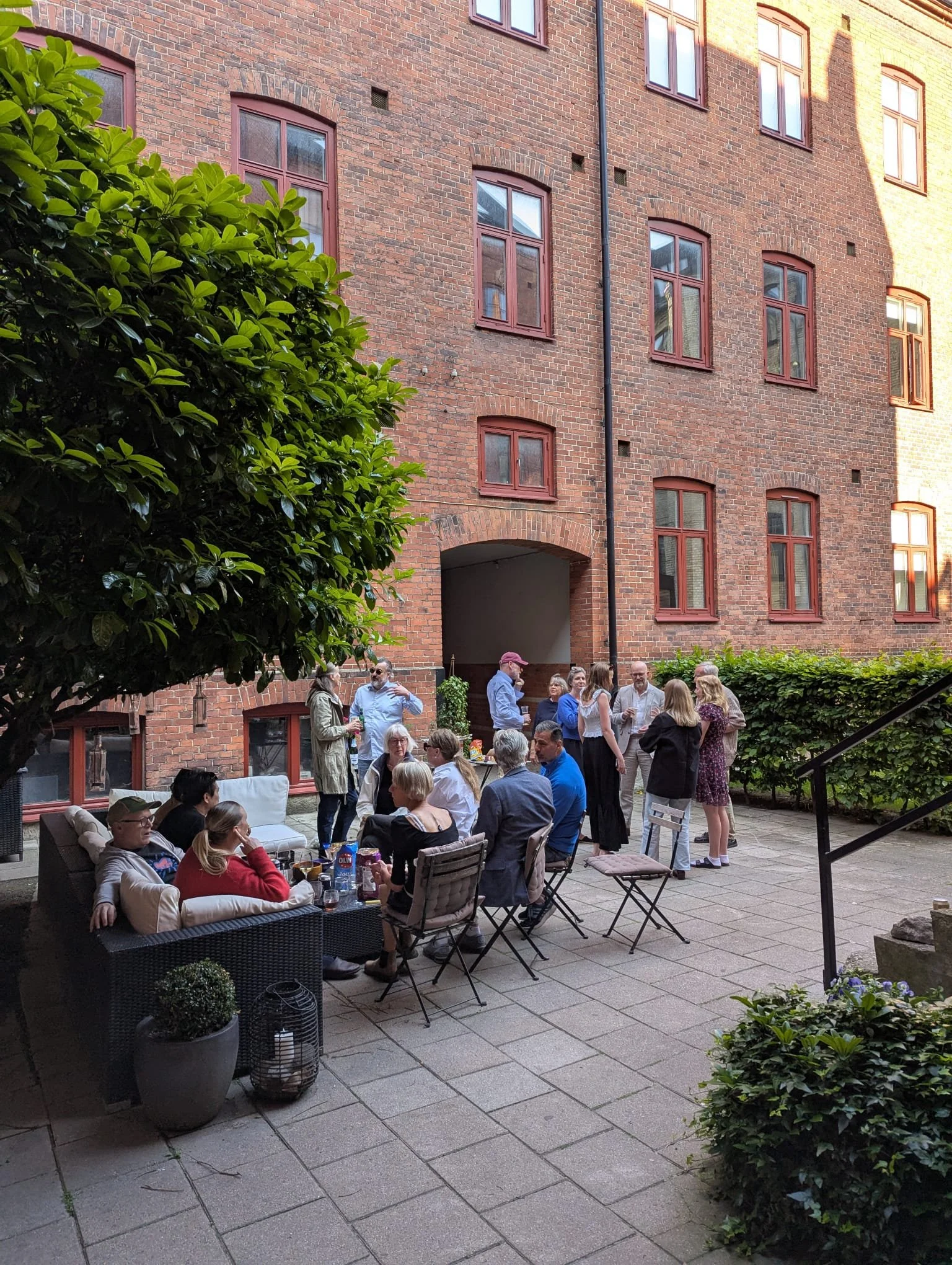 Vi försöker skapa en inbjudande och trivsam utemiljö med växter och platser där vi kan njuta av sköna dagar och kvällar. Alla våra tre gårdar har möblerade uteplatser: